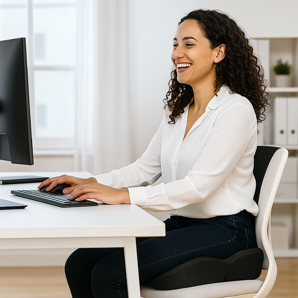 Dein ergonomisches Sitzkissen für Rücken-, Nacken- & Hüftentlastung — entwickelt, um dich endlich wieder frei, konzentriert & energiegeladen fühlen zu lassen.